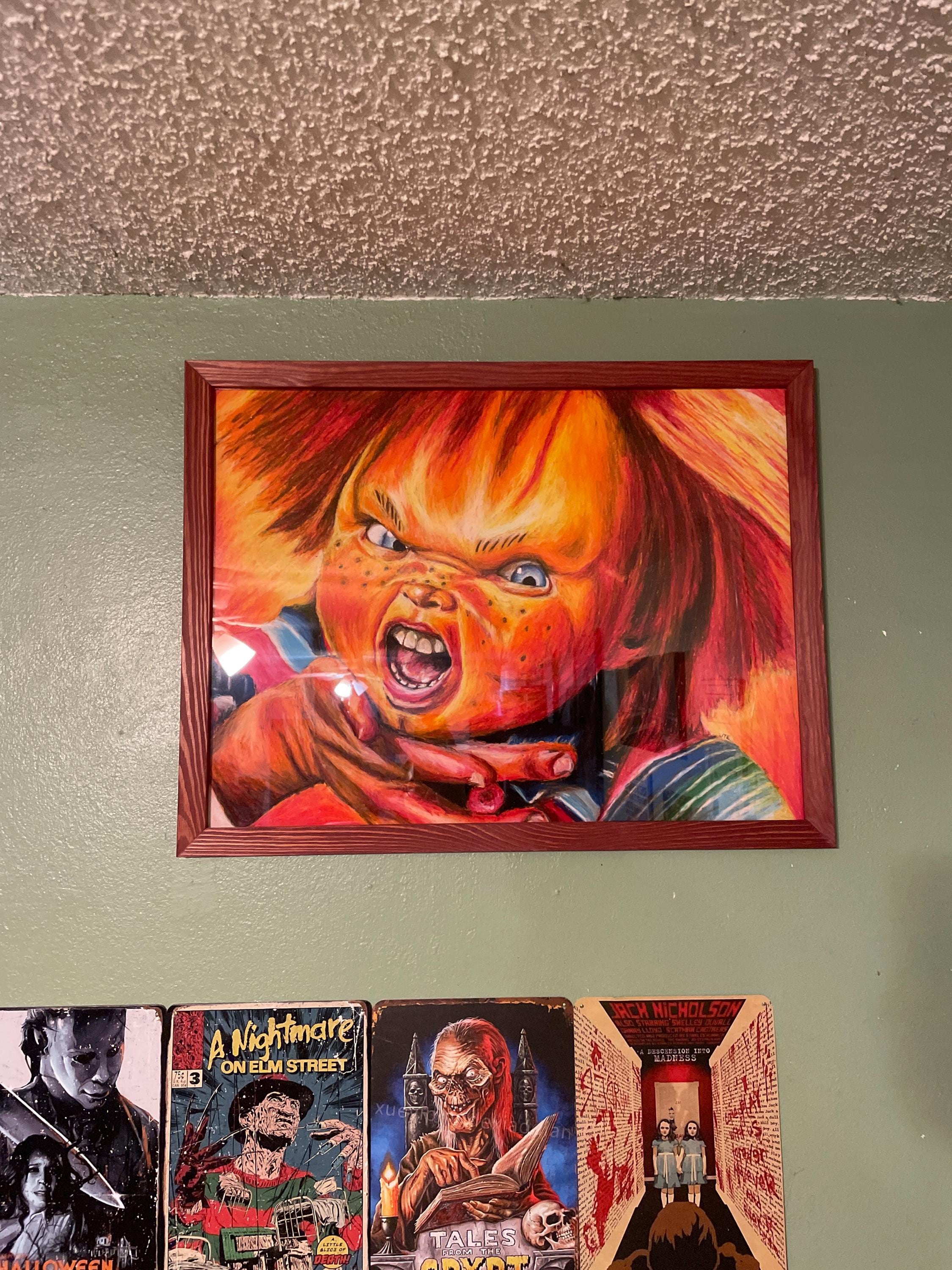 Chucky is so beautiful in person! Pictures don’t do it justice on how vivid the colors and detail are. Wonderful addition to my horror art wall. It was packaged so well. Can’t wait to get another piece someday! Thank you for sharing your art with the world. I will absolutely cherish this piece.